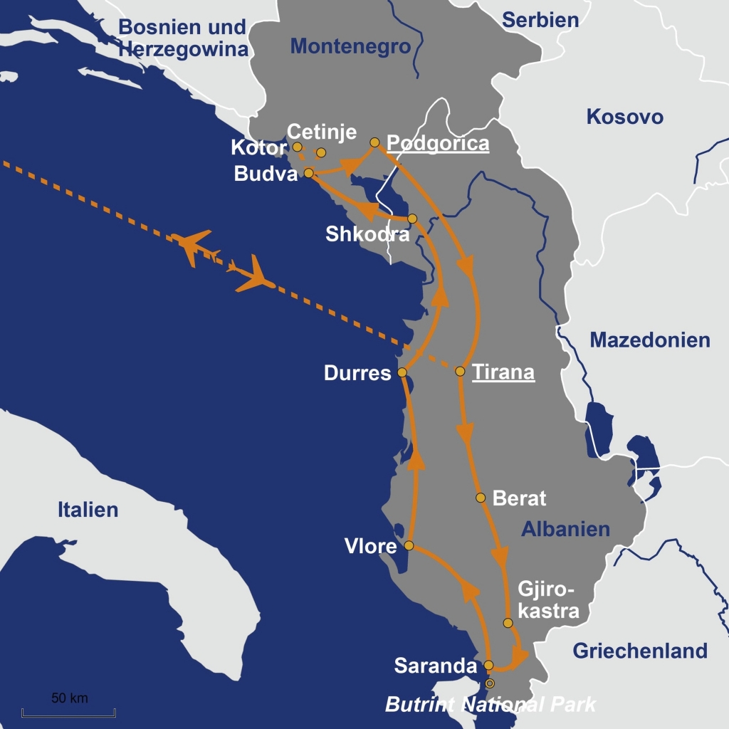 Beide Länder bestechen vor allem durch noch unberührte Berglandschaften, klarem blauen Meerwasser und aufstrebende Badeorte an der Adria. Sie entdecken auch bedeutsame UNESCO Welterbestätten, wie Berat, Gjirokastra und Kotor. Die Gastfreundschaft und das bodenständige schmackhafte Essen werden Ihnen in Erinnerung bleiben.
