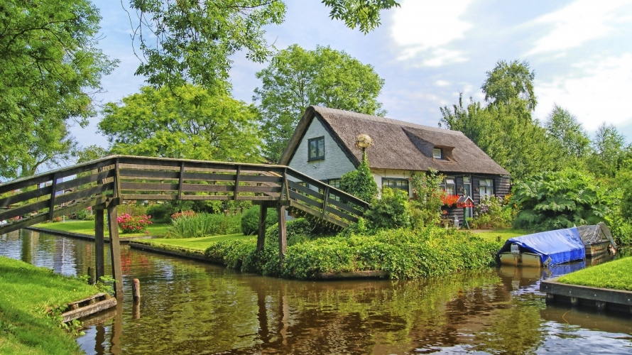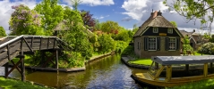 Inmitten des Nationalparks De Weerribben-Wieden befindet sich das ikonische Wasserdorf Giethoorn. Über 150 Brücken und Wasserstraßen haben ihm den Namen "Venedig der Niederlande" eingebracht. Bei einer Schifffahrt (ca. 1 Std.) auf den unzähligen Grachten können Sie dieses faszinierende Wasserreich auf sich wirken lassen. Unverkennbar sind die vielen kleinen, hohen Holzbrücken und schilfgedeckten Bauernhäuser. Für den Rest des Tages statten Sie Flevoland, der jüngsten Provinz der Niederlande, einen Besuch ab. Sie entstand durch Errichtung des Abschlussdeichs und Trockenlegung von Teilen der ehemaligen Zuiderzee. Das urige Fischerdorf Urk erwartet Sie mit seinen typischen Ginkies, den vielen kleinen, engen Gassen sowie charmanten Plätzen und dem historischen Hafen. Auch das nahe Schokland, genau wie Urk eine ehemalige Insel, beeindruckt durch eine 10.000 Jahre alte Kulturgeschichte und zählt zum UNESCO Welterbe.