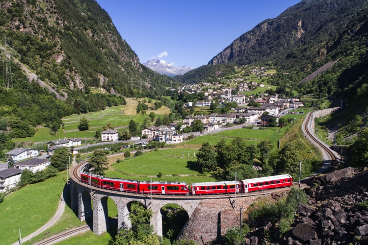 Über den Tonalepass geht es heute nach Tirano. Hier beginnt die Fahrt mit dem Bernina Express auf einer der schönsten und erlebnisreichsten Bahnstrecken der Schweiz. Vorbei an Poschiavo geht es über den 2.300 m hohen Bernina-Pass nach Pontresina und weiter bis nach St. Moritz, wo Sie Ihr Bus wieder empfängt. Die traumhafte Bergwelt der Berninagruppe wird Sie begeistern!