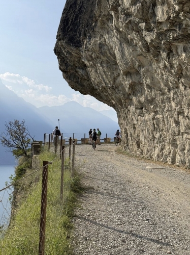 Von Riva del Garda aus führt die Strada del Ponale als historischer Panoramaweg hinauf ins Ledrotal. Der alte Weg, in den Fels gesprengt und heute ein beliebter Rad- und Wanderweg, bietet beeindruckende Ausblicke auf den Gardasee und die umliegenden Berge inmitten einer faszinierenden Landschaft. Sie folgen dem malerischen Weg entlang der Felsen, durch kleine Tunnel und vorbei an idyllischen Orten, bevor sich der Weg ins Tal öffnet. Unterwegs wechseln sich Pfade, Treppen und Teerstraßen ab. Die Wanderung endet am Ledrosee, wo sich auch das Pfahlbautenmuseum befindet - hier haben Sie die Möglichkeit, die Geschichte der Region bei einem Besuch hautnah zu erleben.