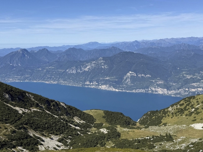 Von Malcesine aus fahren Sie mit der Seilbahn zur Bergstation des Monte Baldo, dem beeindruckenden Gebirgsmassiv am Ostufer des Gardasees. Von dort führt die Wanderung über weite alpine Wiesen und aussichtsreiche Höhenzüge mit beeindruckenden Blicken auf den Gardasee und die umliegenden Berge. Die Colma di Malcesine präsentiert sich als ruhiger Höhenrücken mit einem weiten Panorama, das bei klarem Wetter bis zu den Dolomiten reicht. Anschließend gelangen Sie auf dem gleichen oder einem leicht variierenden Pfad zurück zur Bergstation der Seilbahn, wo sich ein gemütlicher Abschluss mit Einkehr in der Locanda Baita dei Forti anbietet, um regionale Spezialitäten und die Aussicht auf den Gardasee zu genießen. Am Nachmittag kehren Sie mit der Seilbahn zurück nach Malcesine.
