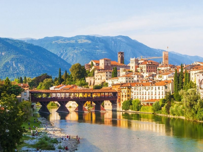 Bei einer Übernachtung in Bassano del Grappa kann man den Nachmittag bei einem Aperitiv mit wunderbarem Ausblick auf der markanten roten Holzbrücke Ponte Vecchio ausklingen lassen. Genießen Sie den typischen Likör Mezzo e Mezzo und lassen Sie dabei den Blick über die nahegelegenen Berge und den Fluss Brenta schweifen. So fühlt sich "dolce vita" an!