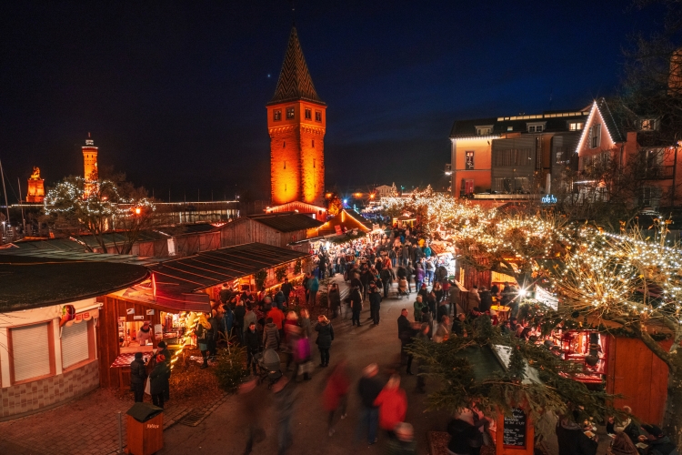 Die Lindauer Hafenweihnacht zählt zu den schönsten Weihnachtsmärkten am Bodensee und besticht durch ihre traumhafte Lage entlang der Lindauer Seepromenade und vor der Kulisse schneebedeckter Berge. Glitzernde Lichter, die sich im Wasser spiegeln sowie ein zauberhafter Märchenwald, der frischen Tannenduft verbreitet, verleihen dem Weihnachtsmarkt einen ganz besonderen Charme.